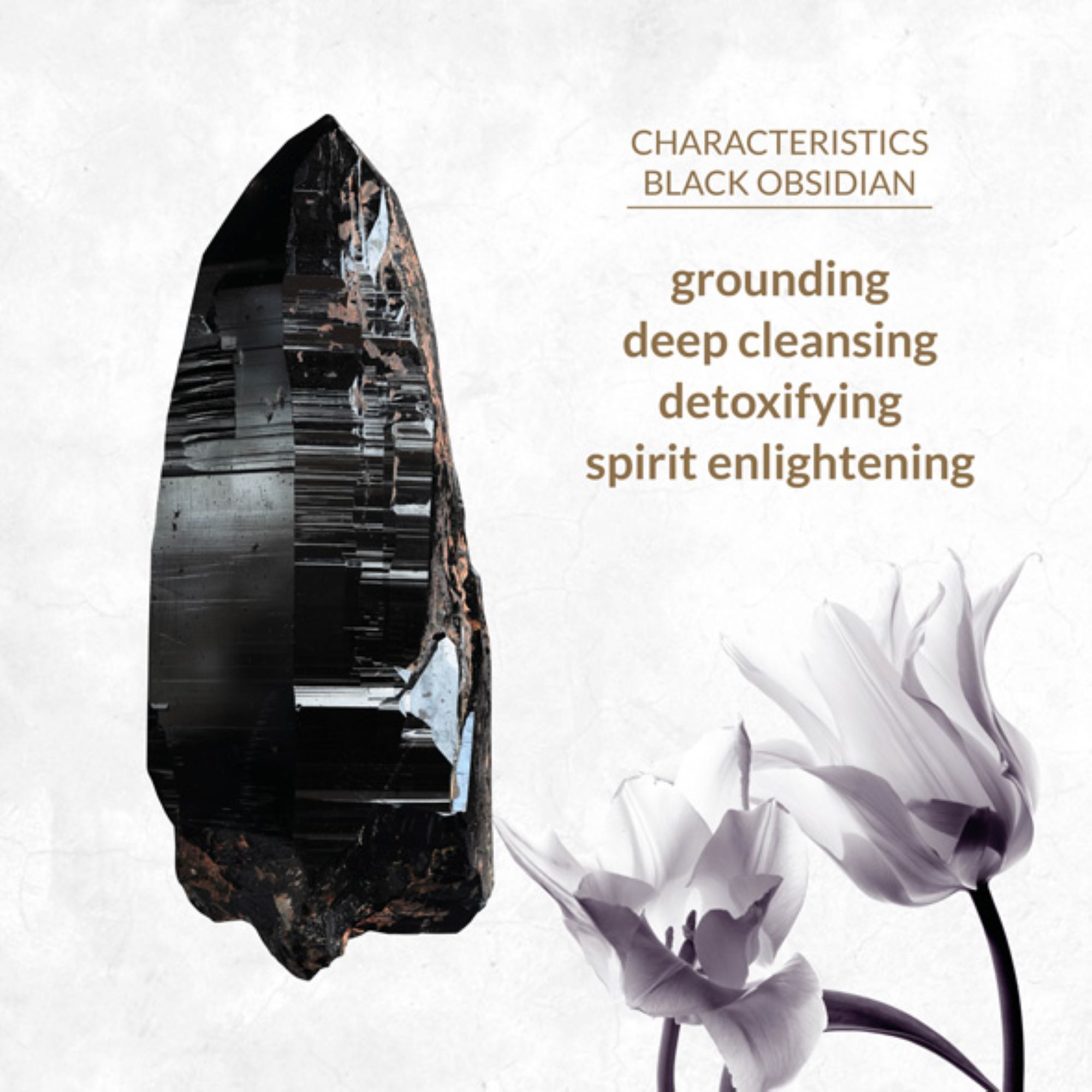 Obsidian holds powerful cleansing properties and can remove negative energy from yourself and your surroundings. This also enables it to neutralise disruptive vibrations. Obsidian removes blockages, fears and self-limiting thoughts. As strong emotions can arise during release, the stone is not intended for highly sensitive individuals. With its deep cleansing properties, it is important to cleanse the stone regularly (preferably after each use). The crystal has a grounding effect and can provide cramp relief.
